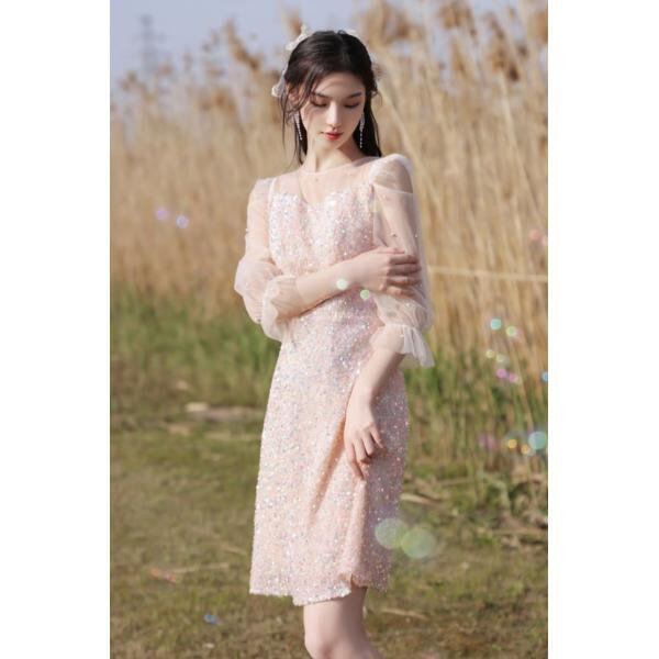 ドレス S-XL フォーマル パーティー ワンピース 二次会 タイト スリット 春夏秋冬 長袖 エレガント 膝丈 レディース 女性 披露宴 結婚式