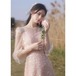 パーティードレス レディース レース ワンピース ノースリーブ Vネック タイトワンピース スリム 総レース ミモレ丈 ハイウエスト フリル エレガント 結婚式 披露宴 謝恩会 二次会 おしゃれ