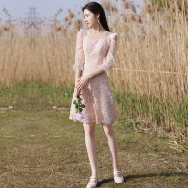 ドレス XS-XXL エレガント レディース 春夏秋冬 パーティー 発表会 可憐 ひざ上 ミニワンピース スパンコール お呼ばれ 豪華 二次会 披露宴