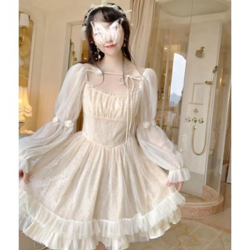 ドレス ワンピース ミニ丈 長袖 無地 透け感 大人可愛い セクシー きれいめ 春秋 お呼ばれ 女子会 パーティー ハイウエスト