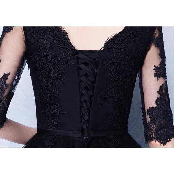 ドレス 結婚式 披露宴 二次会 フォーマル イブニングドレス ロング丈 ミディ丈 華やか エレガント パーティドレス 刺繍 五分袖 七分袖 Aライン