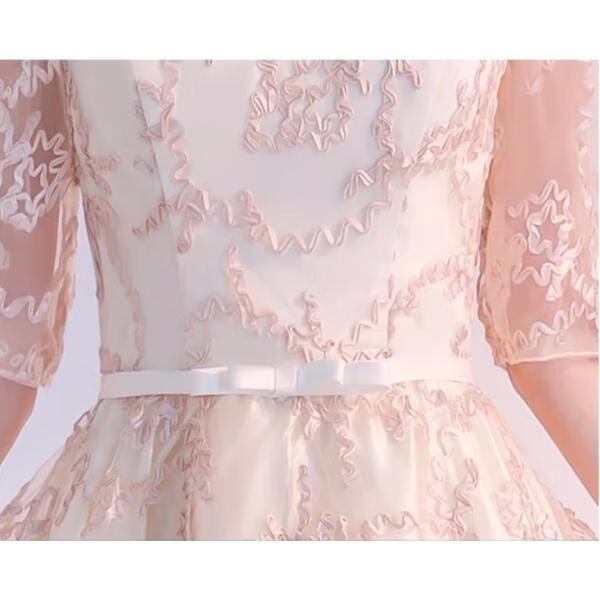 ドレス 結婚式 披露宴 二次会 フォーマル イブニングドレス ロング丈 ミディ丈 華やか エレガント パーティドレス 刺繍 五分袖 七分袖 Aライン