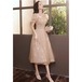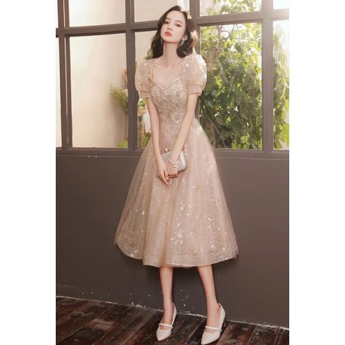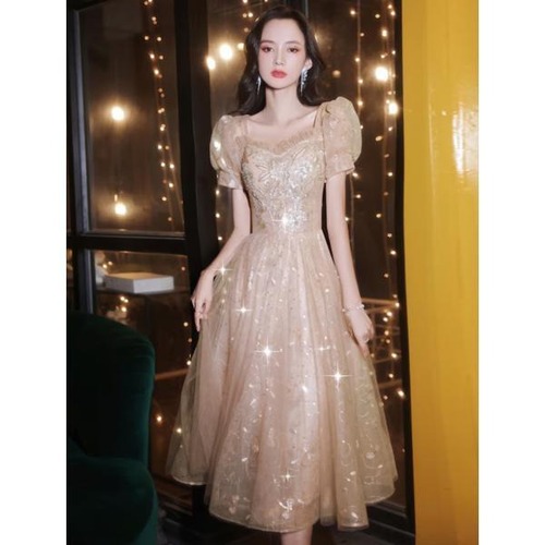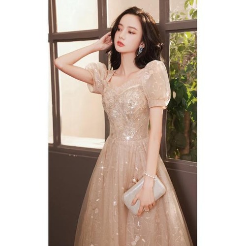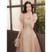 ドレス XS-3XL レディース フォーマル パーティー ワンピース 二次会 Aライン 春夏秋冬 長袖 エレガント オールシーズン 上品 シャンパン