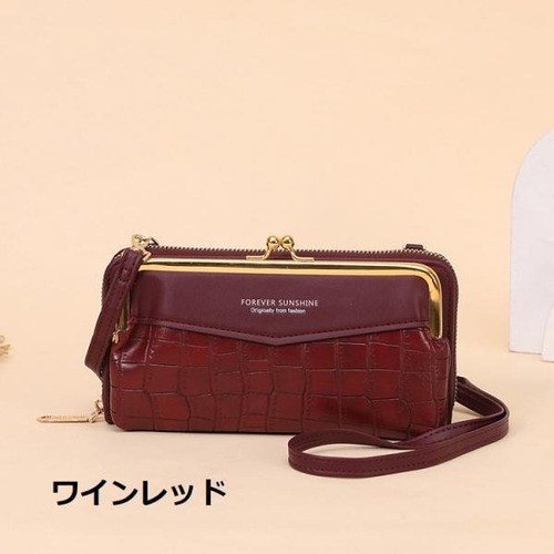 財布 レディース ポシェット お財布バッグ ショルダーバッグ がま口 ポーチ クロコダイル調 型押し フェイクレザー おしゃれ 30代 40代 50代