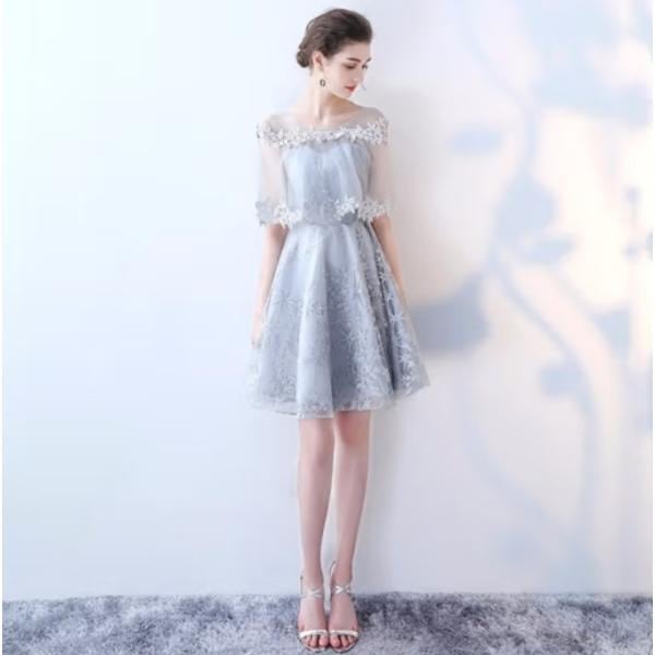 ドレス パーティードレス ミニ丈 レース 5分袖 レディース 大人可愛い フォーマル きれいめ 結婚式 二次会 お呼ばれ 謝恩会 hin-1040