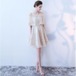 ドレス 結婚式 披露宴 二次会 フォーマル イブニングドレス ロング丈 シャンパン 華やか エレガント パーティ パフスリーブ ビーズ 半袖 20代