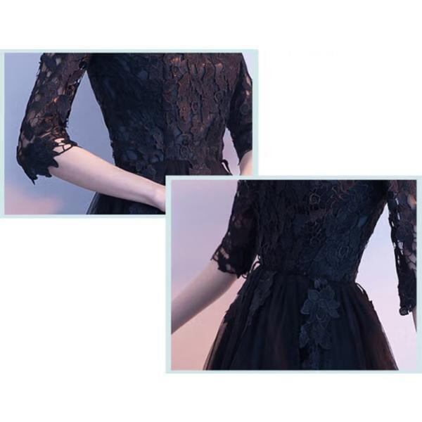 ドレス 結婚式 披露宴 二次会 フォーマル イブニングドレス ロング丈 ミディ丈 華やか エレガント パーティドレス 刺繍 五分袖 七分袖 Aライン