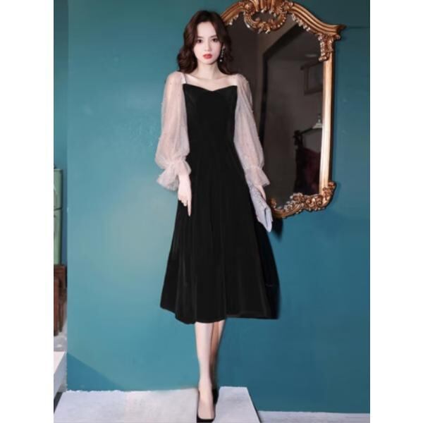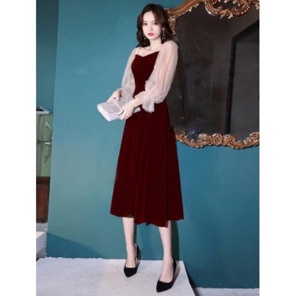 ドレス S-XL フォーマル パーティー ワンピース 二次会 タイト スリット 春夏秋冬 長袖 エレガント 膝丈 レディース 女性 披露宴 結婚式