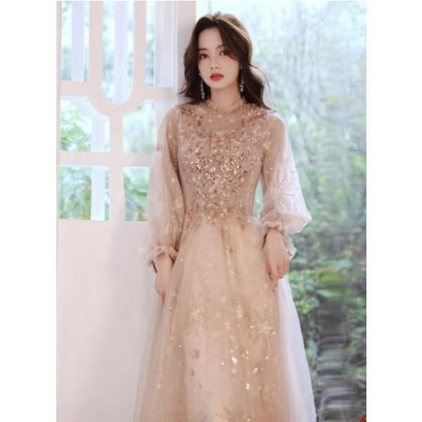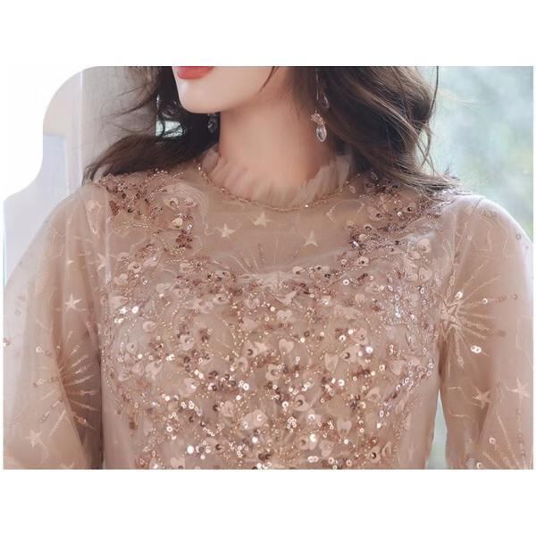 ドレス 結婚式 披露宴 二次会 フォーマル イブニングドレス ロング丈 ミディ丈 華やか エレガント パーティドレス 刺繍 五分袖 七分袖 Aライン