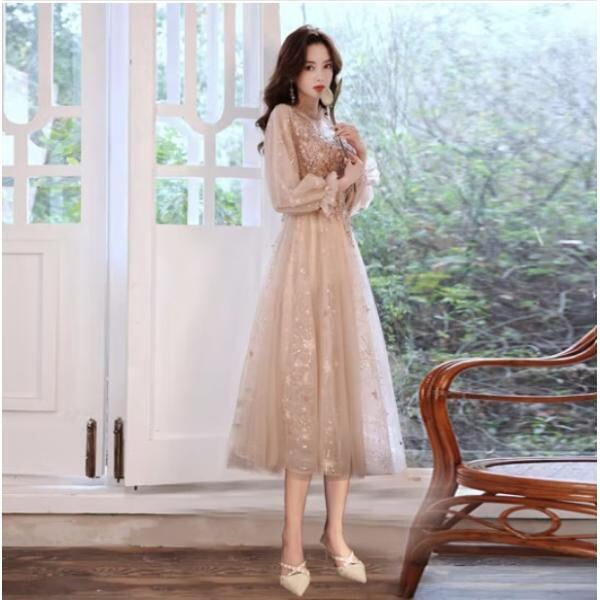 ドレス S-XL フォーマル パーティー ワンピース 二次会 タイト スリット 春夏秋冬 長袖 エレガント 膝丈 レディース 女性 披露宴 結婚式