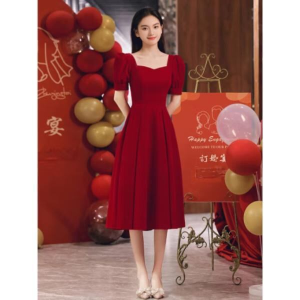 パーティードレス レディース 結婚式ドレス 演奏会ドレス ワンピースドレス ロングドレス ロングワンピース スクエアネック パフスリーブ レース ハード柄 キュート 可愛い ハイウエスト きれいめ