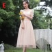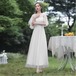 ロングドレス レトロ レトロ調 襟付き 森ガール パーティードレス ワンピース フォーマル 2次会 謝恩会 レディース パール シースルー ガーリー