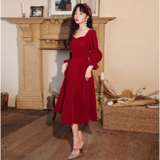 ドレス 結婚式 披露宴 二次会 フォーマル イブニングドレス ミディ シンプル エレガント パーティドレス Aライン 長袖 ファスナー ハートネック