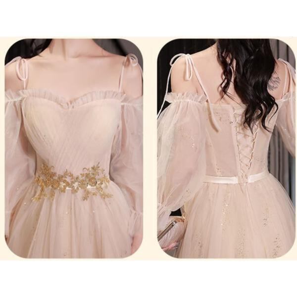 ドレス パーティードレス ロング丈 五分袖 蝶々 Vネック 大人可愛い フォーマル 結婚式 二次会 お呼ばれ hin-1010