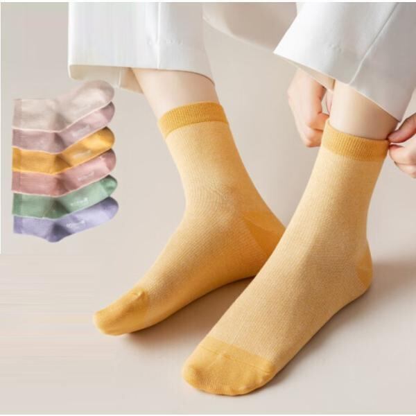 ソックス 靴下 レディース ガールズ 女子 オールシーズン カジュアル シンプル 無地 フリーサイズ セット 5足組 通気性 コットン レトロ 吸湿