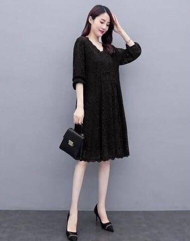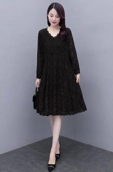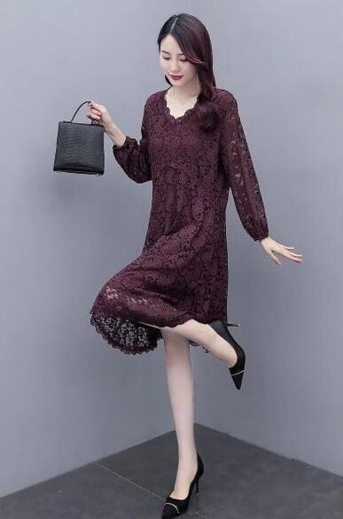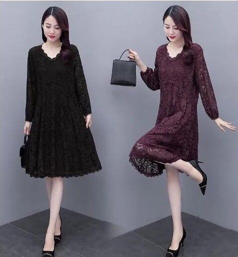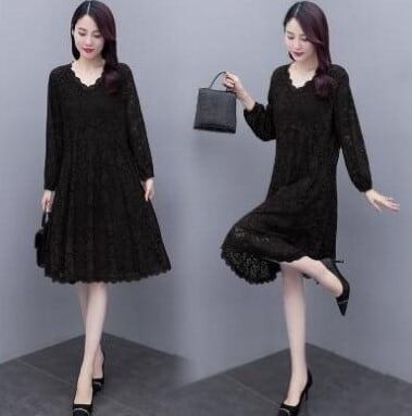 ドレス ワンピース パーティードレス ドレスワンピース 結婚式 発表会 演奏会 フォーマル Vネック 花柄レース 膝丈 長袖 秋冬 韓国 20代 30代 40代 大きいサイズ