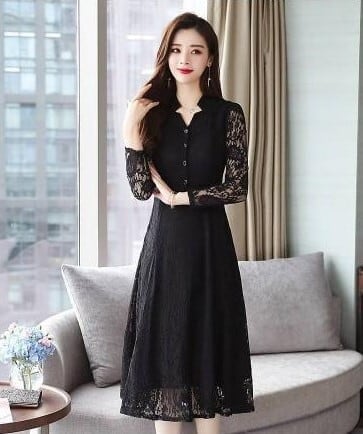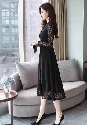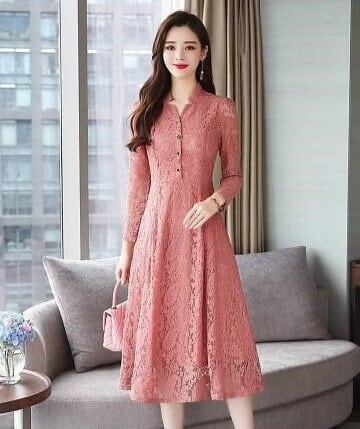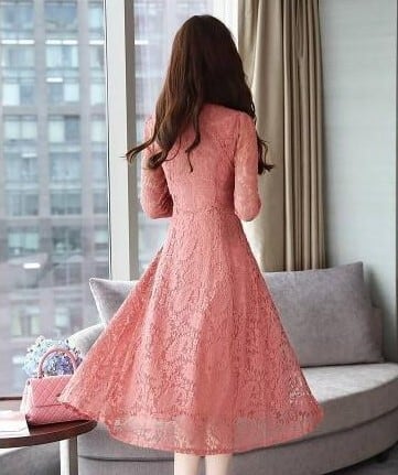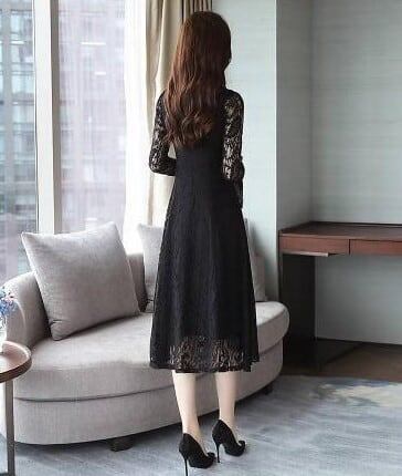 ドレス ワンピース パーティードレス ドレスワンピース 結婚式 発表会 演奏会 フォーマル レース 膝丈 Aライン 七分袖 秋冬 韓国 20代 30代 40代 大きいサイズ