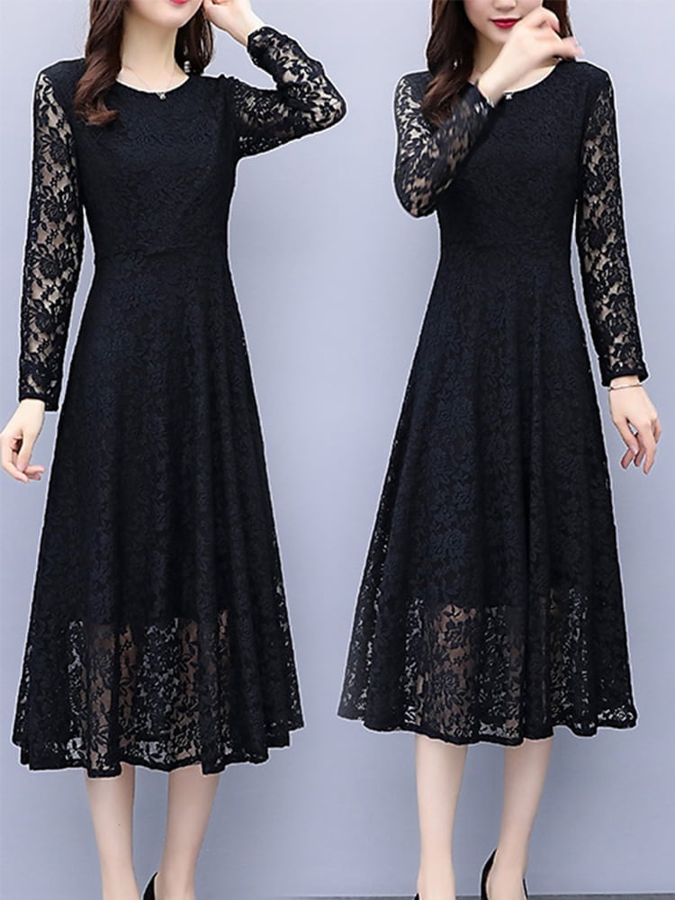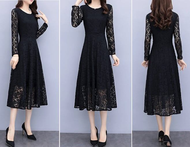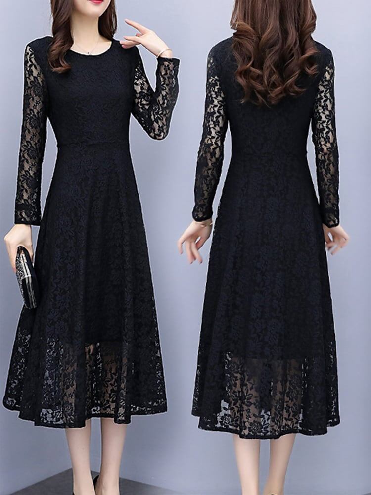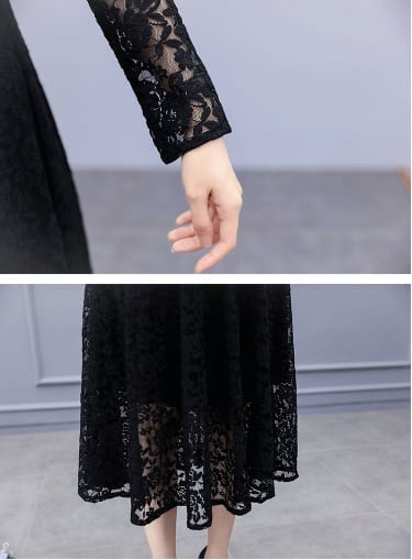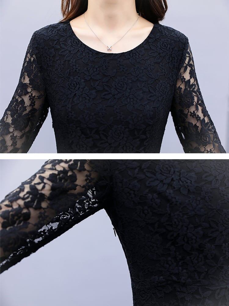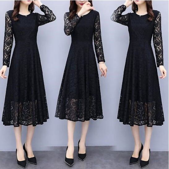 ドレス ワンピース パーティードレス ドレスワンピース 結婚式 発表会 演奏会 フォーマル レース 膝丈 Aライン 長袖 黒 秋冬 韓国 20代 30代 40代 大きいサイズ