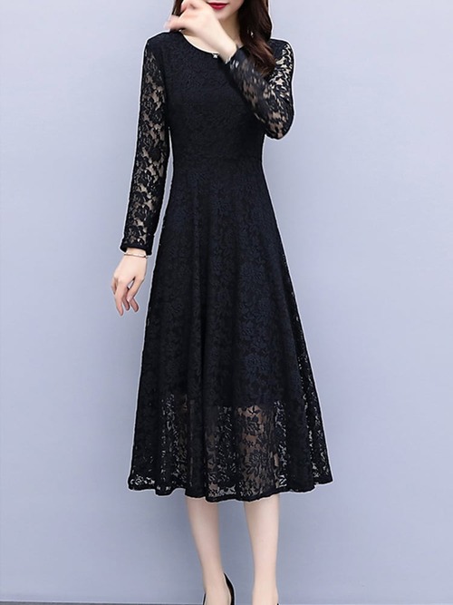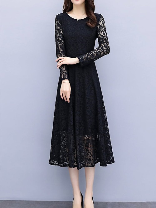 ドレス ワンピース パーティードレス ドレスワンピース 結婚式 発表会 演奏会 フォーマル レース 膝丈 Aライン 七分袖 秋冬 韓国 20代 30代 40代 大きいサイズ