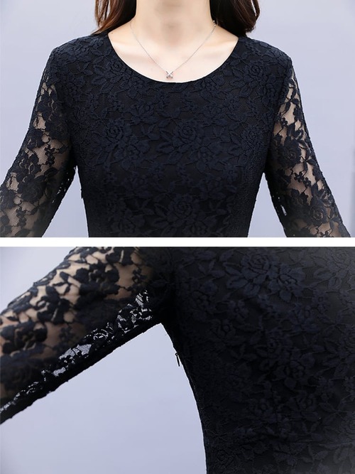 ドレス ワンピース パーティードレス ドレスワンピース 結婚式 発表会 演奏会 フォーマル レース 膝丈 半袖 黒 春夏秋 韓国 20代 30代 40代 大きいサイズ