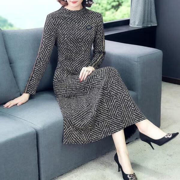 ワンピース ニット ひざ下丈 長袖 無地 大人可愛い カジュアル ガーリー お出かけ 通勤 デート 女子会 重ね着風 レディース ニットワンピース 上品 通学