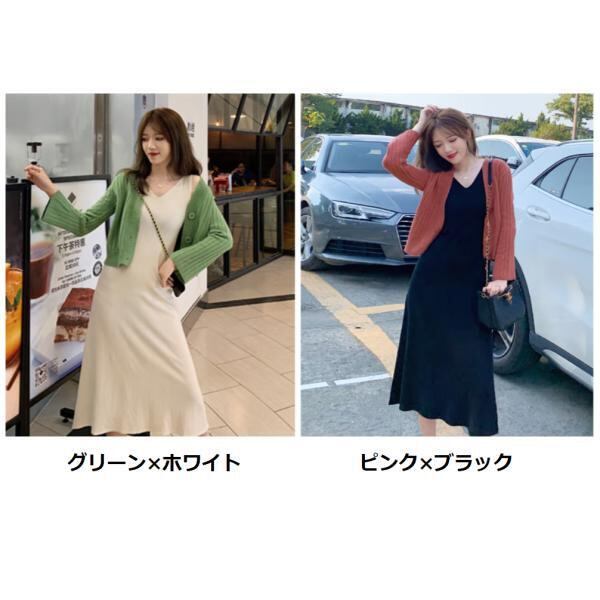 【カラー】 グリーン×ホワイト、ピンク×ブラック 【素材】 コアスパンヤーン 【総重量】 1kg 【サイズ】 M、L、XL、2XL M ワンピ バスト:68-92cm ウエスト:74-38cm スカート丈:103cm ニット バスト:100cm 着丈:41cm 袖丈:50cm L ワンピ バスト:70-96cm ウエスト:76-102cm スカート丈:104cm ニット バスト:104cm 着丈:42cm 袖丈:51cm XL ワンピ バスト:72-100cm ウエスト:78-106cm スカート丈:105cm ニット バスト:108cm 着丈:43cm 袖丈:52cm 2XL ワンピ バスト:74-104cm ウエスト:80-110cm スカート丈:106cm ニット バスト:112cm 着丈:44cm 袖丈:53cm ※サイズは測り方によって1〜2cmの誤差が生じる場合がございます。 ymm-211 セットアップ レディース M-2XL 春秋 ワンピース カーディガン 長袖 ニットドレス パステルカラー セットアップ レディース Vネック ワンピ こちらの商品は海外からの【お取り寄せ商品】となります。 ご注文確定後(入金確認後)、海外よりお取り寄せさせていただきます。 お届けまで14日〜24日程度お時間をいただいております。 .。o○o。.★.。o○o。.☆.。o○o。.★.。o○o。.☆ shinelivelyへお越しいただきありがとうございます 以下の注意事項をお読みいただき、ご購入をお願い致します。 ※注意事項※ ●トラブル防止の為遠慮なくメールにてご質問・ご連絡下さい。 ●海外からのお取り寄せ商品のため、カラーやイメージが違う、実寸が違う等を気にされる方のクレーム、返品、交換は一切お受けしておりません。そのような方のご購入は予めご遠慮下さい。(初期不良に関しては返品交換の対応をさせていただきます。) ●海外の製品は多少の縫製ミス、糸のほつれ、細かい不具合、多少の色の違い、イメージ違い等がごく稀にございます。検品は徹底しておりますので、ご理解の上ご購入をお願い致します。 ●お届けまで注文確定後14日〜24日となります。 ●ご注文を頂いても海外のメーカーにて完売の場合は、商品をお届けする事ができませんのでキャンセルとさせていただく場合がございます。 ●お客様の個人情報は発送以外に使用することは一切ございません。 ●ご注文確定後のお客様都合によるキャンセル、サイズ・カラーの変更はお受けすることが出来ません。