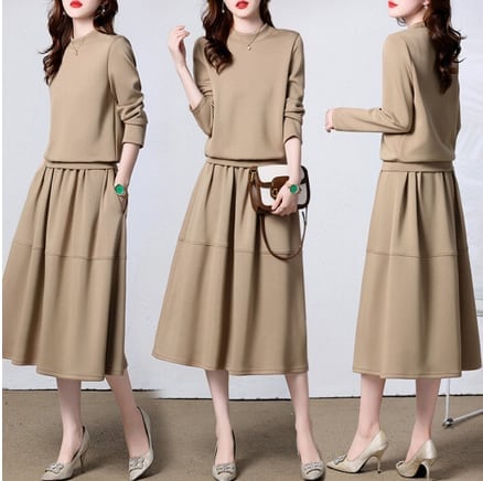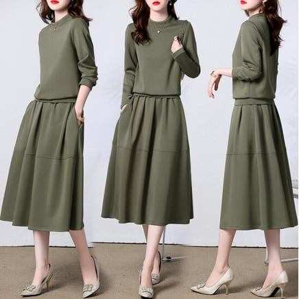 セットアップ 長袖 レディース ウエスト総ゴム ゆったり 体型カバー ロング ミドル シンプル 着痩せ おしゃれ きれいめ カジュアル 春 秋 30代 40代 50代