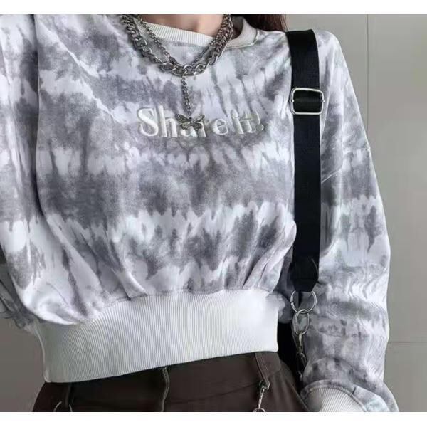 トップス レディース プルオーバー 春秋 M-2XL ストリート ショートカットソー タイダイ ラウンドネック トレーナー タイダイ トレーナー 春秋