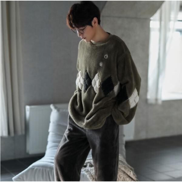 パジャマ レディース メンズ カップル ペア 2点セット セットアップ ルームウェア 部屋着 フリース ゆったり 厚手 長袖 カジュアル プルオーバー
