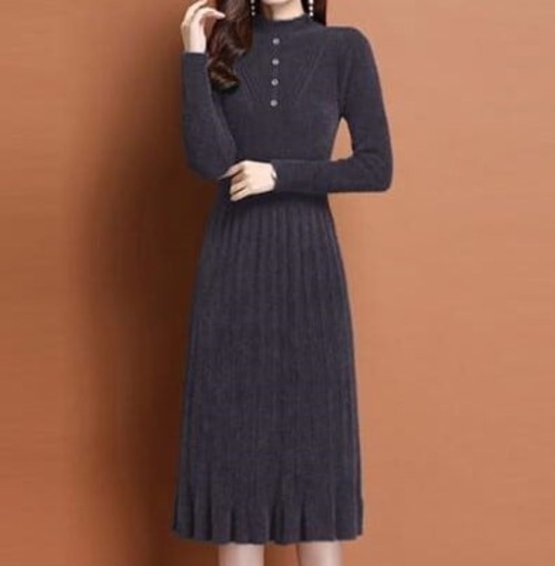 ワンピース ニットドレス レディース ガールズ エレガント 通勤 カジュアル 新作 長袖 ラウンドネック プリーツスカート フリース 秋冬 Aライン