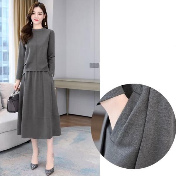 セットアップ ワンピース ベスト レディース 2点セット ミモレ丈 ワンピ 上下セット 花柄ワンピース ニット 透け感 きれいめ 上品 カジュアル 長袖 韓国 大きいサイズ 通勤 通学