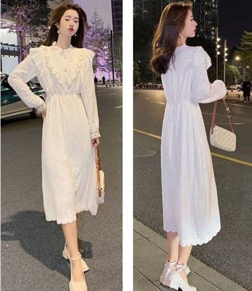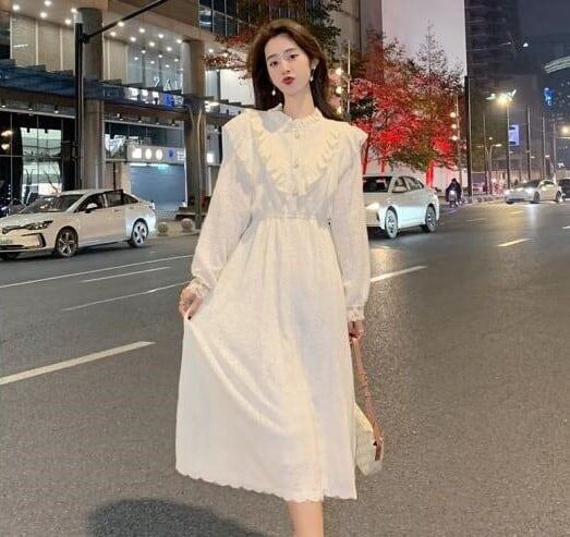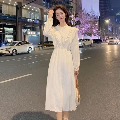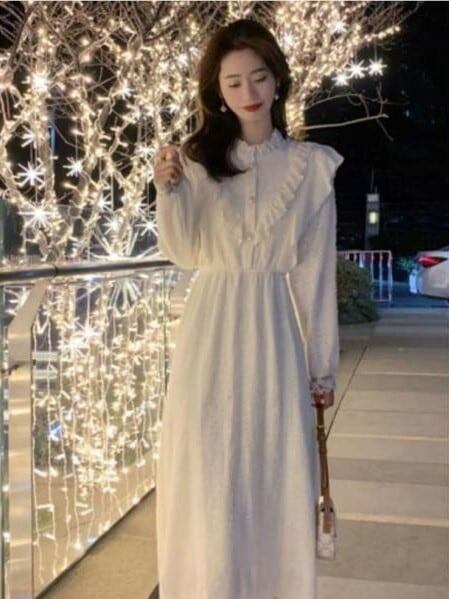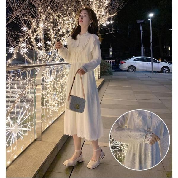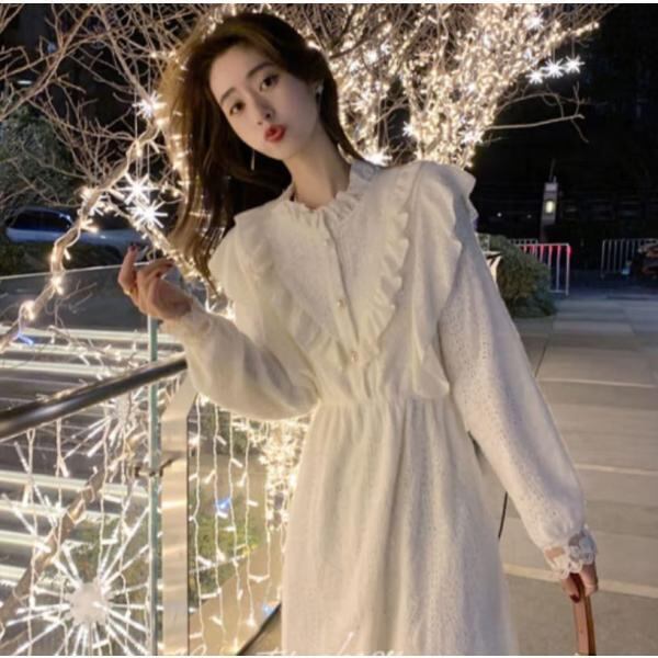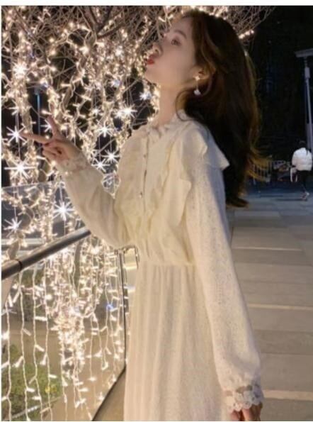 ワンピース ミニ丈 透け感 長袖 レース フェミニン レディース ホワイト 大きいサイズ パール 可愛い 韓国風 おるちゃん 人気 トレンド おでかけ デート 男子ウケ 10代 20代 30代