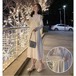 ワンピース ニット ひざ下丈 長袖 無地 大人可愛い カジュアル ガーリー お出かけ 通勤 デート 女子会 重ね着風 レディース ニットワンピース 上品 通学