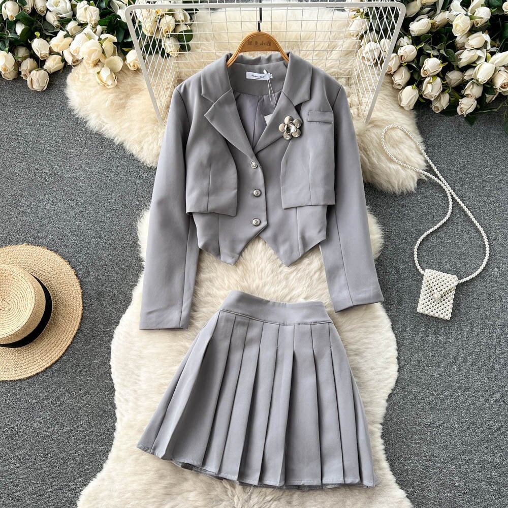 【カラー】 ブラック、グレー 【サイズ】 S 上着 着丈:26cm 袖丈:54cm バスト:88cm ベスト 着丈:45cm バスト:82cm スカート 丈:38cm ウエスト:66cm M 上着 着丈:27cm 袖丈:55cm バスト:92cm ベスト 着丈:46cm バスト:82cm スカート 丈:39cm ウエスト:70cm L 上着 着丈:27cm 袖丈:55cm バスト:96cm ベスト 着丈:46cm バスト:86cm スカート 丈:39cm ウエスト:74cm ※サイズは測り方によって1〜2cmの誤差が生じる場合がございます。 hin-1610 こちらの商品は海外からの【お取り寄せ商品】となります。 ご注文確定後(入金確認後)、海外よりお取り寄せさせていただきます。 お届けまで14日〜24日程度お時間をいただいております。 スーツ 3点セット ジャケット ベスト プリーツスカート ミニ丈 無地 大人可愛い シンプル きれいめ 春秋 お出かけ 女子会 デート ハイウエスト .。o○o。.★.。o○o。.☆.。o○o。.★.。o○o。.☆.。o○o。. shinelivelyへお越しいただきありがとうございます 以下の注意事項をお読みいただき、ご購入をお願い致します。 ※注意事項※ ●トラブル防止の為遠慮なくメールにてご質問・ご連絡下さい。 ●海外からのお取り寄せ商品のため、カラーやイメージが違う、実寸が違う等を気にされる方のクレーム、返品、交換は一切お受けしておりません。そのような方のご購入は予めご遠慮下さい。(初期不良に関しては返品交換の対応をさせていただきます。) ●海外の製品は多少の縫製ミス、糸のほつれ、細かい不具合、多少の色の違い、イメージ違い等がごく稀にございます。検品は徹底しておりますので、ご理解の上ご購入をお願い致します。 ●お届けまで注文確定後14日〜24日となります。 ●ご注文を頂いても海外のメーカーにて完売の場合は、商品をお届けする事ができませんのでキャンセルとさせていただく場合がございます。 ●お客様の個人情報は発送以外に使用することは一切ございません。 ●ご注文確定後のお客様都合によるキャンセル、サイズ・カラーの変更はお受けすることが出来ません。