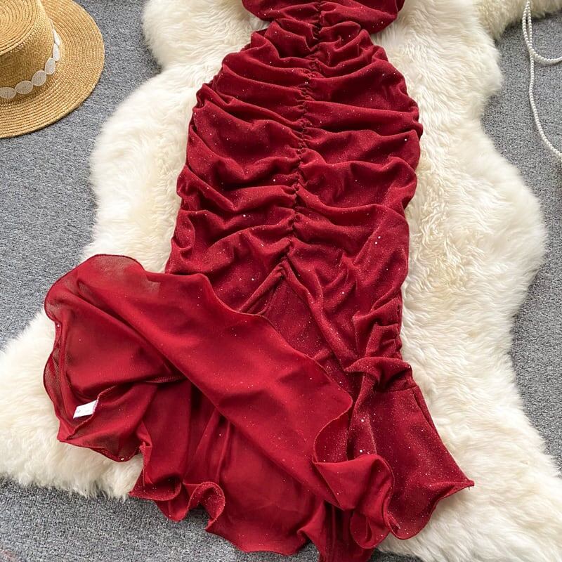 ドレス S-XL フォーマル パーティー ワンピース 二次会 タイト スリット 春夏秋冬 長袖 エレガント 膝丈 レディース 女性 披露宴 結婚式