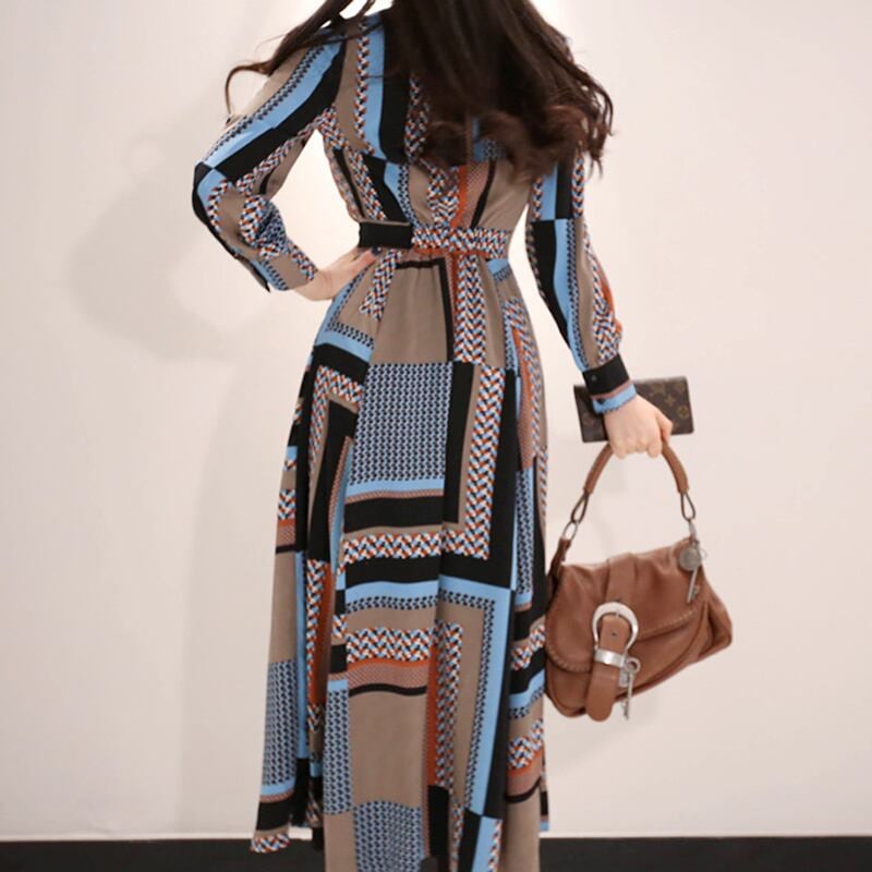 ワンピース ミモレ丈 レディース ファッション お洒落 春 秋 エスニック カジュアル Vネック 体系カバー デザインドレス 個性的 ウエストマーク ハイウエスト お呼ばれ 20代 30代