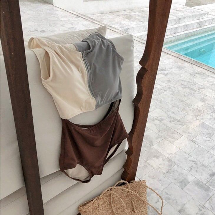 ビキニ レディース 水着 ツーピース スイムウェア ビーチウェア シンプル 無地 カジュアル ハイウエスト 海 ビーチ プール 海水浴 リゾート 体型カバー 2点セット 上下セット スクエアネック