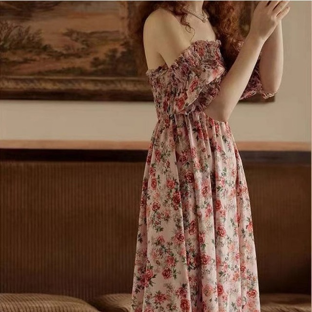 ワンピース ミモレ オフショル 花柄 レディース 大人可愛い フォーマル きれいめ お出かけ 通勤 オフィス お呼ばれ hin-1056