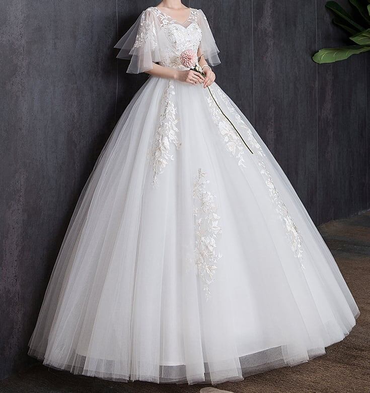 【サイズ】 S、M、L、XL S バスト:83cm ウエスト:63cm ヒップ:88cm M バスト:86cm ウエスト:67cm ヒップ:90cm L バスト:90cm ウエスト:73cm ヒップ:92cm XL バスト:94cm ウエスト:80cm ヒップ:94cm ※サイズは測り方によって1〜2cmの誤差が生じる場合がございます。 hin-1023 ロングドレス プリンセスドレス ウエディングドレス 半袖 袖あり 五分袖 Vネック 刺繍 総レース 白 パーティードレス 花嫁 こちらの商品は海外からの【お取り寄せ商品】となります。 ご注文確定後(入金確認後)、海外よりお取り寄せさせていただきます。 お届けまで14日〜24日程度お時間をいただいております。