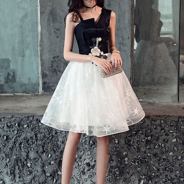 パーティードレス ドレス ミニ丈 花刺繍 星 透け感 レディース 大人可愛い フォーマル きれいめ 結婚式 二次会 お呼ばれ 謝恩会 hin-1020