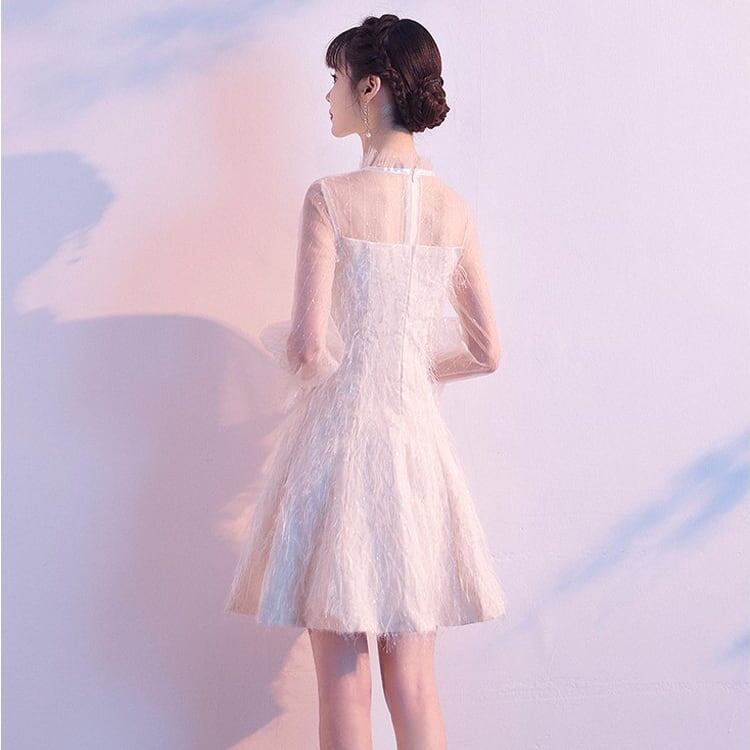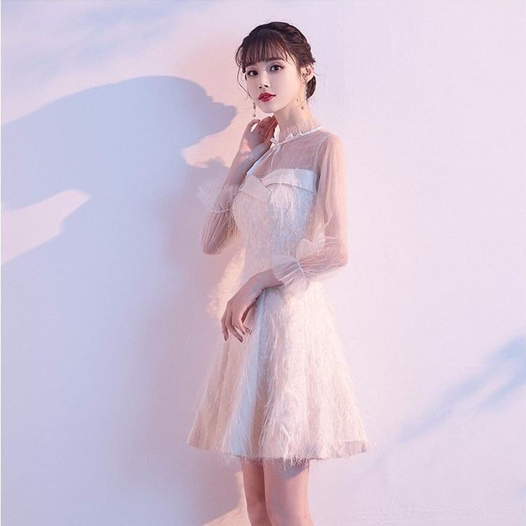 ドレス ワンピース ミニ丈 長袖 無地 透け感 大人可愛い セクシー きれいめ 春秋 お呼ばれ 女子会 パーティー ハイウエスト
