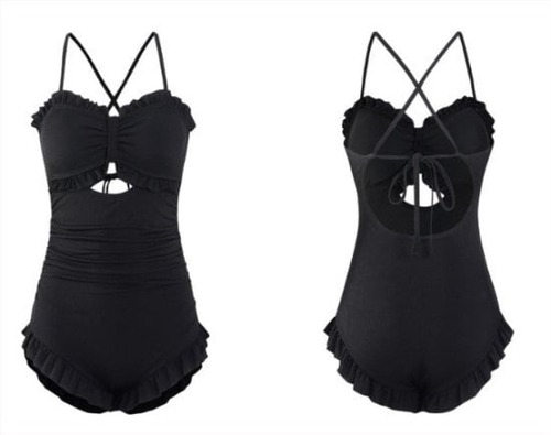 水着 黒 セクシー レース フリル キャミワンピ 大人 可愛い エレガント きれいめ くびれ レディース 女性 春 夏 海 プール 着痩せ 体型カバー オルチャン 美シルエット 美脚