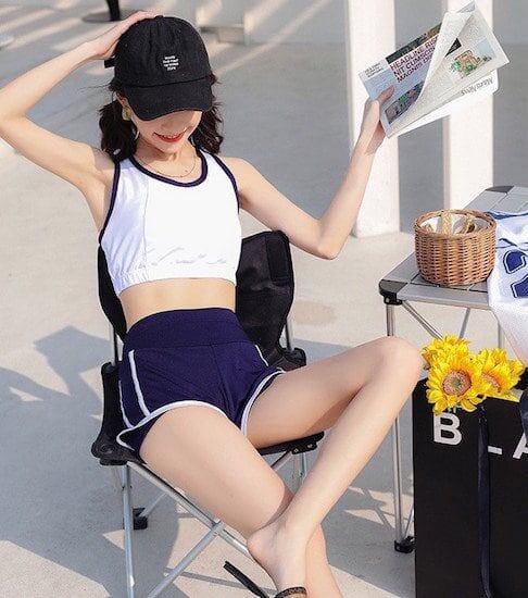 水着 タンキニ水着 レディース 半袖 袖あり スポーツ水着 スポーティー Tシャツ カジュアル 旅行 温泉 プール リゾート 海 レトロ スポーツ お洒落 可愛い 10代 20代 ホワイト ネイビー