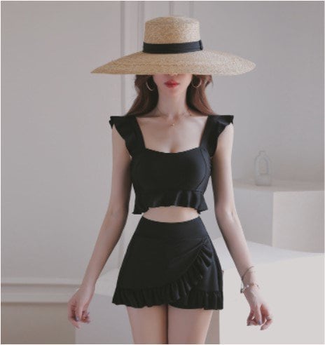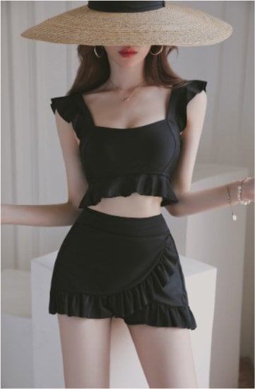 水着 タンキニ 無地 フリル ラップスカート フリル 大人 可愛い シンプル ノースリー くびれ レディース 女性 春 夏 海 プール 体型カバー 着痩せ オルチャン 美シルエット 美脚