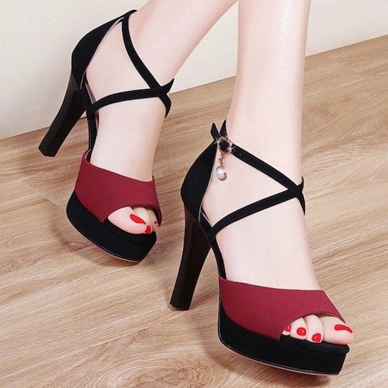 サンダル レディース シューズ 靴 ハイヒール 防水 バックル クロスストラップ カジュアル ラバー PU お洒落 おしゃれ 可愛い 大人可愛い お出かけ 旅行 デート レジャー 夏 ブラック レッド