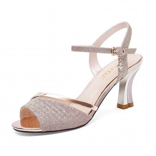 サンダル レディース シューズ 靴 ミドルヒール ハイヒール ラインストーン カジュアル お洒落 おしゃれ 可愛い 大人可愛い お出かけ 女子会 旅行 レジャー シャンパン シルバー ファッション