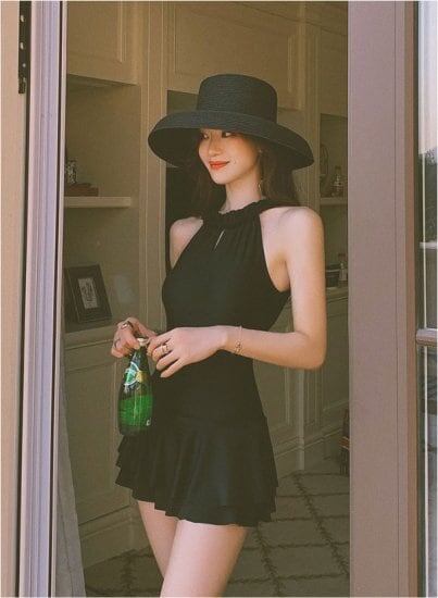 水着 セクシー 無地 ホルターネック ミニ フレアスカート パッドつき くびれ 大人 可愛い レディース 女性 春 夏 海 リゾート プール 体型カバー 着痩せ オルチャン 美シルエット 美脚