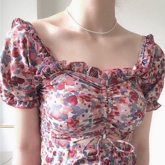 水着 ワンピース レディース 半袖 袖あり ハイウエスト 花柄 ギャザー リゾート 海 温泉 プール ラブリー キュート ガーリー 女っぽ レトロ 20代 30代 可愛い かわいい お洒落 レッド