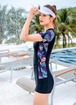 水着 ワンピース 半袖 袖あり レディース フィットネス スポーツ水着 ヨガ スポーツ リゾート 海 プール 温水 温泉 きれいめ 花柄 20代 30代可愛い かわいい お洒落 おしゃれ ブラック 黒