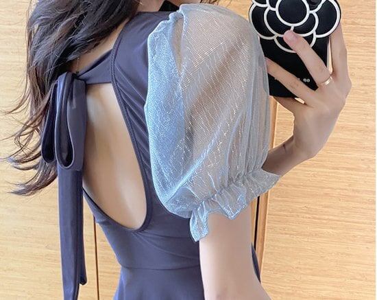 水着 ビキニ 2WAY UVケア 透け感 大人 可愛い シンプル ラメ トップス くびれ レディース 女性 春 夏 海 プール 体型カバー 着痩せ オルチャン 美シルエット 美脚
